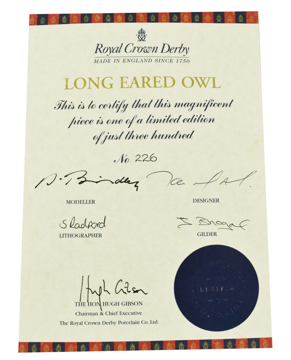 – Sold OutLtd Ed of 300. Exclusive to Royal Crown Derby Visitor Centre. First in the Prestige Series. Gold Backstamp.Year 2007. Certiticate....