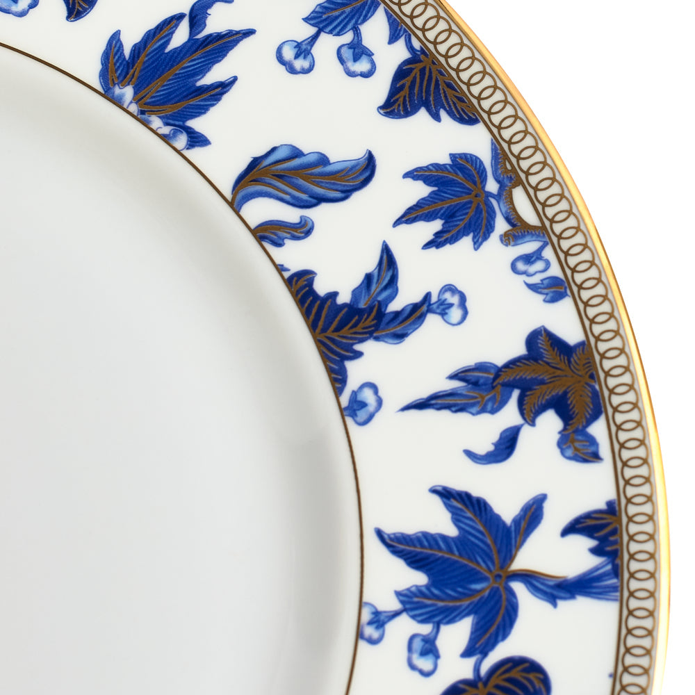 Decorated in a bright blue ornate floral pattern. Hand-lined with a golden finish. Inspired by archival patterns from nearly 200 years ago.